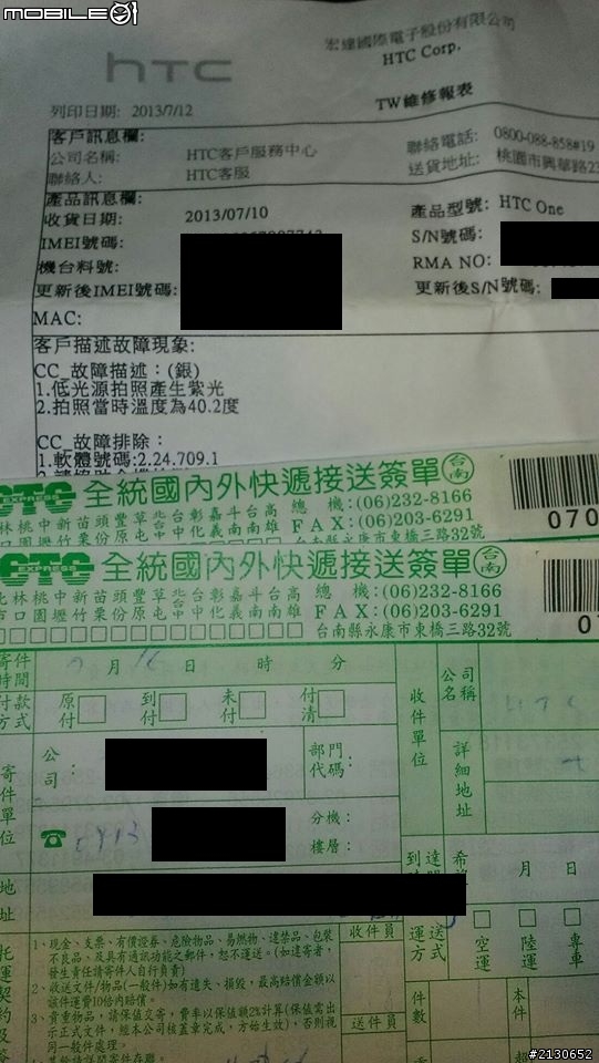 我上禮拜也因為紫光送修,換回一支7月6日出廠的手機沒有紫光了,但是panel顏色變黃(跟送修前比),上方電源開關沒有光澤(有磨損的痕跡),側邊塑膠跟金屬之間有一些落差希望HTC在品管上能夠再嚴謹一些,加油好嗎
