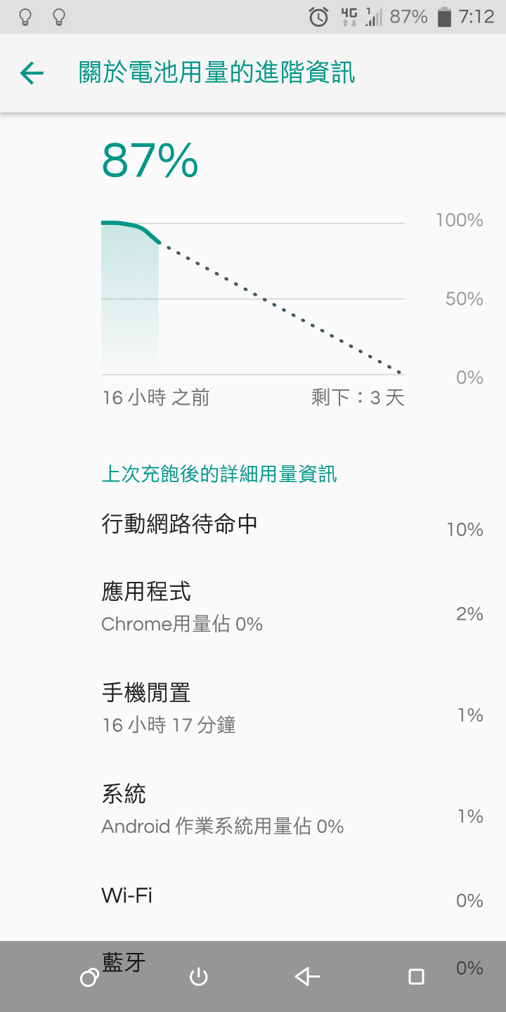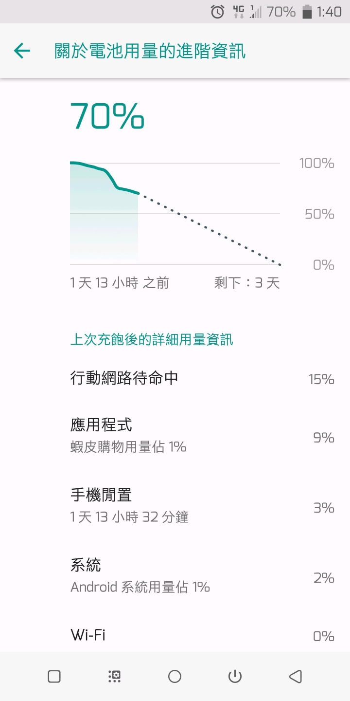 到底有沒有將待機耗電問題解決還需要觀察幾天因為更新後一定會重開機而重開機後會有二至三天以上的蜜月期我最長是七天所以這個還要觀察個一個星期後再來定論昨天不小心又重開機所以昨晚開飛航今早還正常過個幾天再來分享到底是更新好還是不更新好回報這幾天使用狀況還沒重開機每天開飛安睡覺早上少10%正常用到晚上剩50-60%比起12月份是比較耗電一點點比起一月份是有改善一點點
