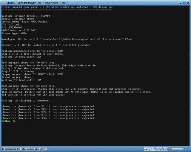 但是我買的明明是台版的AMOLED的DESIRE官方2.2OTA的ROM.有使用一鍵ROOT(有忍者圖案)12月有更新到2.10.751.4我做的步驟如下1.在網址下載名為alpharev.iso的檔案2.用nero燒出來3.手機開機並且勾選"USB除錯中"4.用燒出來的CDR開機.等待提示5.在等待裝置提示出來時接上手機(開機中)6.接上手機出現這樣的畫面7.說我的手機不是GSM版本.後來電腦就自動關機了請問大家是哪方面做錯了??