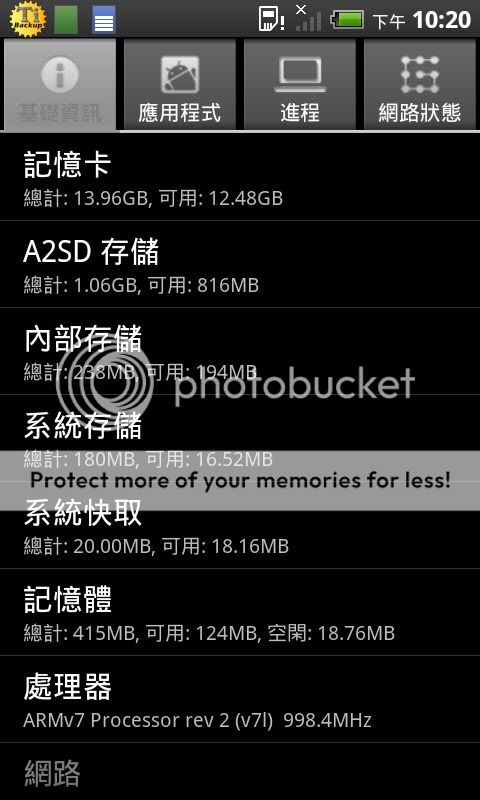 賢大四樓貼的圖 HD ROM 的內部儲存 260MB 可用 245MB但是我剛裝完 卻是 內部儲存238 MB 可用198 MB如下圖 有安裝拍圖軟體跟Titanium backup,原本是198MB賢大的只差15,但我安裝完後卻少了將近40不知道是什麼問題??2011.03.09是在刷機的時候少了某個wipe動作造成的
