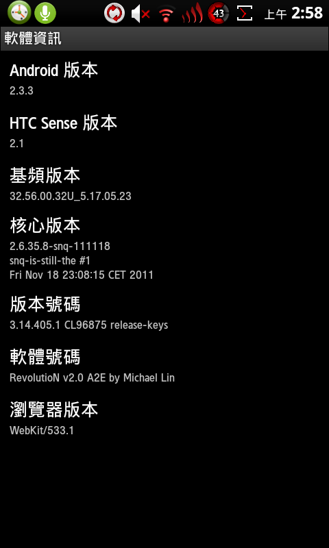 經過兩天的測試, 之前使用IC ROM不知道為啥撐不到一個小時, Wifi會自動斷線, 但是RevolutioN經過兩天家裡和公司有網域加上ap mode的使用下, 完全都不會斷線, 真是讓我喜出望外的繼續握著我的Desire