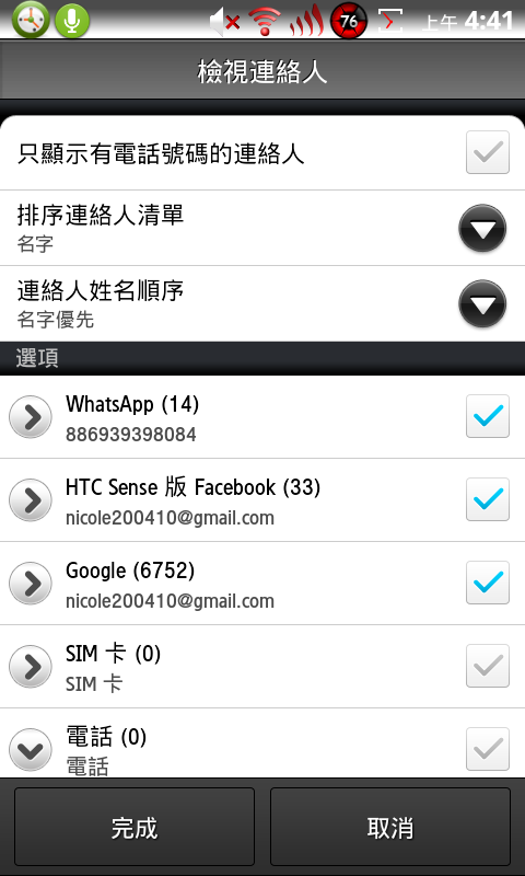 聯絡人同步之後
