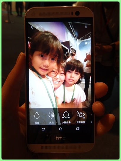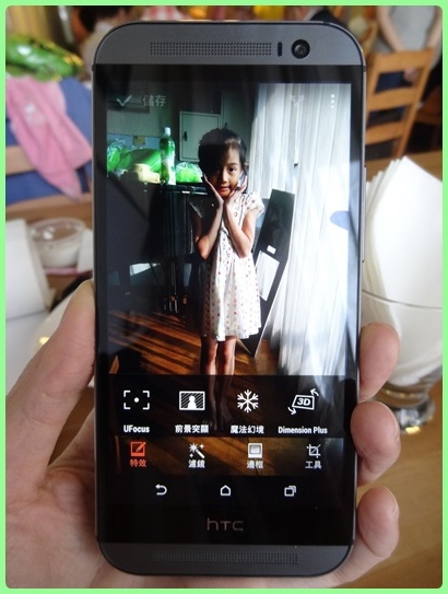 我和孩子一起玩相機,一起玩自拍,試了有趣貼圖及圖片編輯功能,玩到忘了時間,忽略體驗會的時間有限,都怪 HTC ONE M8 增加了太多有趣好玩的新相機功能,讓我們玩到欲罷不能,最後拍下來的照片因為網路不穩定,拍了百來張的照片及影片,竟然只存了少數幾張帶回家~嗚。(自己貪玩活該~XD)