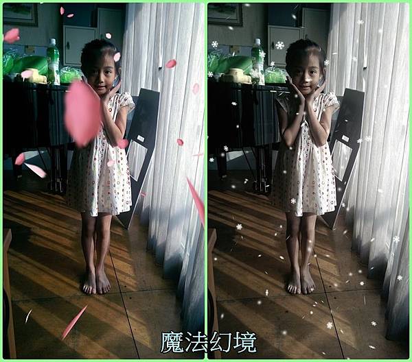 魔法幻境,蓁蓁自己選了一個櫻花和雪景的效果,這2張我選擇儲存為相片