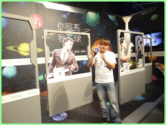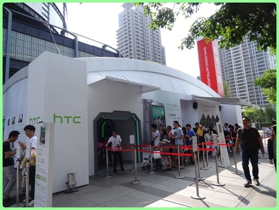 上星期帶家人一起提前慶祝母親節,回程經過HTC門巿,雖然在對街騎車經過,但眼角看見幾位Show girl及民眾聚集在HTC門巿外,二話不說拐個彎停好車,就朝正妹........呃~不,是朝HTC衝去!XD