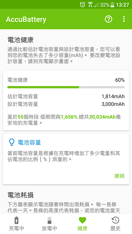 用不到1個月(大概半個月左右)耗電量出問題,睡前充飽醒來電量掉了20-30%送修: