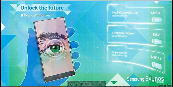 右邊幾個付款的圖示似乎暗示未來可以利用虹膜辨識來付款..