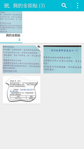 不管是智慧選取或全能剪擷取下來的資料,都可儲存在全能貼裡,以供後續需要使用。