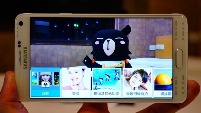 喔熊我也喜歡隨手拍照,而Note 4在照相部分也有大幅度的進步!像1600萬畫素的主鏡頭,就擁有光學防手震(OIS)功能,在多數場景下,都能拍出不晃動的照片。至於370萬畫素的前鏡頭,現在也提供120度大光圈超廣角自拍模式,可以在自拍時,把更多人或景色容納入鏡。另外,我也可以將常用的三項照相功能選項拖曳到捷徑功能表,方便我拍照時能快速選取。