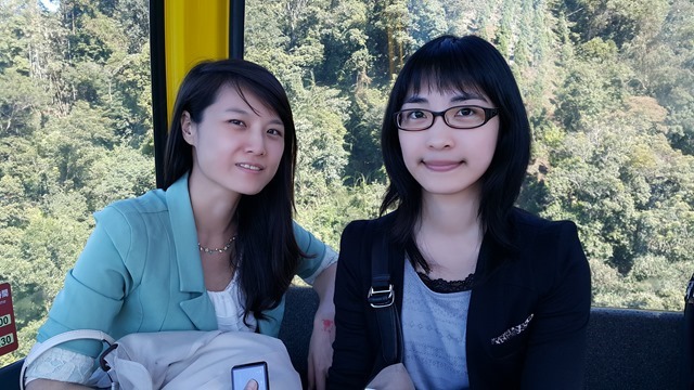 因此,為了讓大家看出效果,在搭日月潭纜車時,厚臉皮請同車廂的兩位女性朋友充當model,一樣以美肌效果分別調整為0、4與8的情況拍照,就可以明顯地看出差異了。不過,請她們看了照片後,她們覺得如果將美肌效果調到最大拍攝的照片,感覺就會有點假,所以大家在使用美肌磨試拍照時,還是需要拿捏一下美肌效果的程度啦!