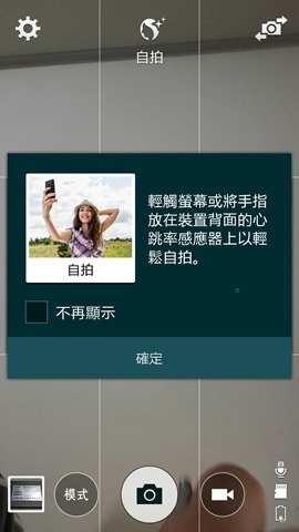使用Note 4主相機自拍也變方便了,只要選擇後置相機自拍模式,然後將調整方框大小與位置,當相機在方框內偵測到我的臉時,兩秒後就會自動拍照啦!