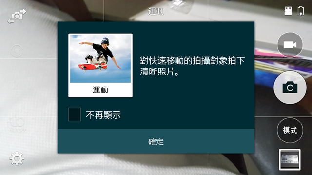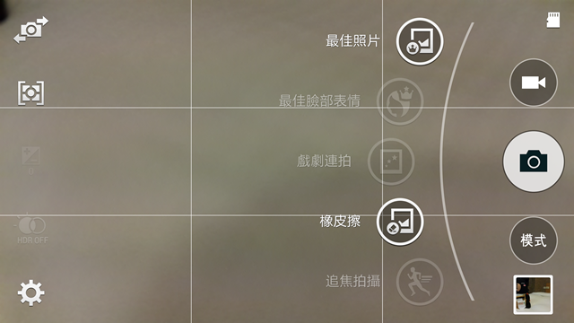 所有已經在手機內的照相模式,可以在管理畫面中,選取哪些模式要顯示在相機模式選項表中。