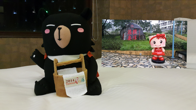 體驗當天,在礁溪碰面後,就到要體驗的溫泉會館cehck in。進房後,看到喔熊拿出他的手機,感覺很眼熟呢…