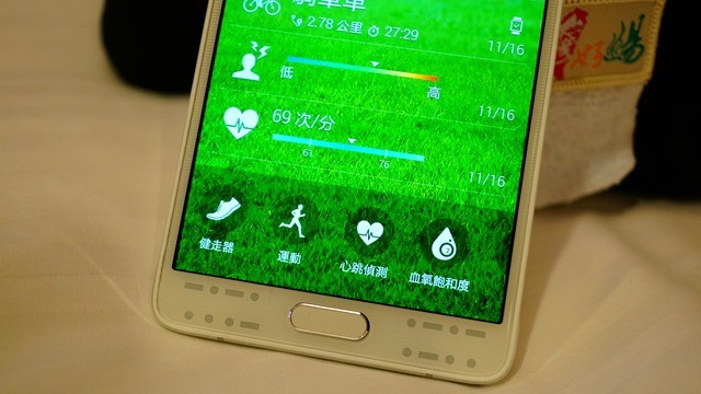 搭配Note 4的硬體,在Note 4的S Health中,多了血氧飽和度與紫外線偵測兩種新功能,讓S Health更加好用!