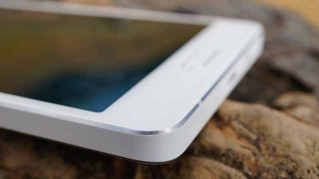 這次體驗的Galaxy A5,主打訴求之一就是金屬一體成型的機身,但這部分是指側面的金屬框架與機背,機身正面這裡並非是金屬材質。