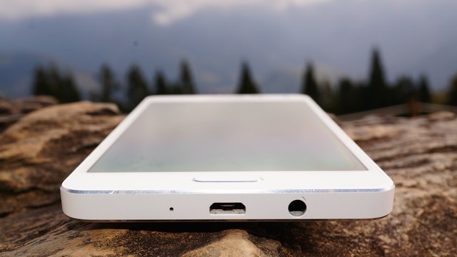 機身底部,配置了麥克風、microUSB 2.0充電傳輸埠與3.5mm耳機接孔。