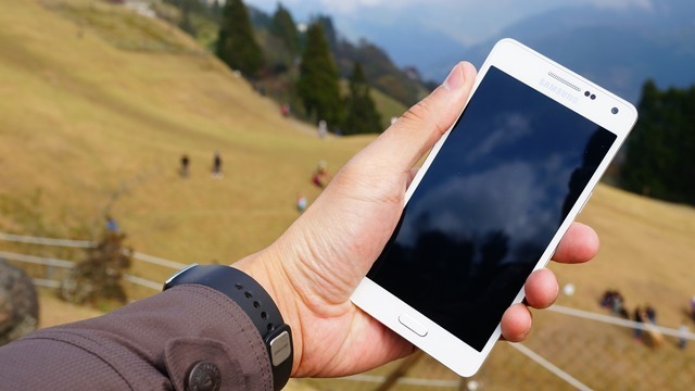 以我通常都是裸機使用的情況下,這次體驗Galaxy A5時,由於它的金屬一體成型的磨砂觸感金屬材質側邊與機背,握起來的感覺我就覺得很好!不過,相對缺點就是,如果遇到像這次到武嶺時接近零度的氣溫,一開始把Galaxy A5握在手中的冷冽感就會有點讓人受不了…