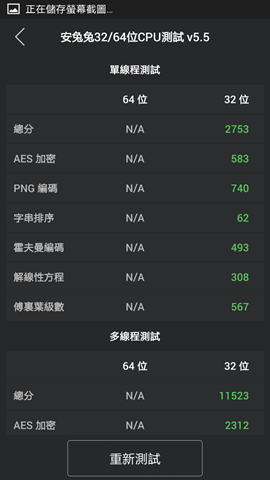 CPU測試部分,單線程測試總分為2753,多線程測試總分為11523。