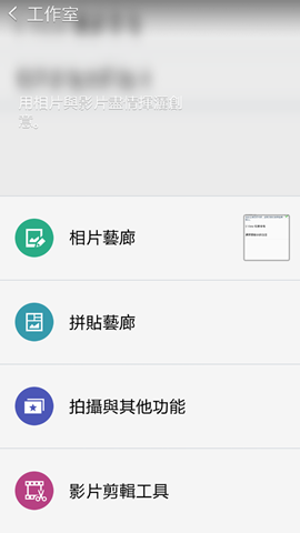 另外,第一次看到的內建軟體「工作室」,可以讓使用者一次選擇最多六張照片進行拼貼。