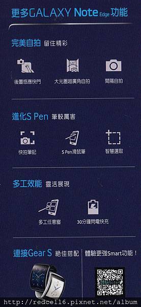 GALAXY Note Edge,除了感受到GALAXY Note Edge金屬邊框打造出來的弧形溫潤曲線式包覆5.6吋QHD SUPER AMOLED (2560 X 1440 + 160)2K高清大螢幕,不單單只是全面大幅提升使用者的感官與視野,透過獨家的側邊Edge螢幕讓你可隨心所欲的在Edge螢幕這獨特的空間中去打造屬於自己專屬的曲面快捷列(體驗會的分組競賽中就已經見識到01網友在極短的時間內就可以創作出各樣生動有趣且活靈活現的Edge螢幕桌布),讓使用者可以更全面更快速的掌握更多生活重要資訊。側邊Edge螢幕可以單獨也可以輔助全螢幕顯示及輔助拍照及遊戲等功能,讓使用者不但可以同時使用主畫面又可以從側邊螢幕得到即時對應輔助資訊,真的是有如虎添翼的功效;夜深人靜SAMSUNG GALAXY Note Edge還有宛如阿拉丁神燈一樣,在待機模式下輕輕上下滑動側邊Edge螢幕就能顯示訊息、日期、天氣及時間等資訊的夜間模式,是集節能及智慧人性於一邊的使用高科技介面,SAMSUNG GALAXY Note Edge除了獨樹一格的側邊Edge螢幕外,本身其他的硬體也是一等一的強大,除了有跟NOTE 4同級的感壓升級至2048階的S Pen滑鼠筆來進行智慧選取等功能,讓使用者擁有無以倫比的數位手寫使用經驗,讓SAMSUNG GALAXY Note Edge一機在手也能輕鬆一筆定江山!而使用者也能透過SAMSUNG GALAXY Note Edge的後置感應快門、間隔快門、快拍筆記及120°大光圈超廣角及多段美肌功能,無論是上班族、學生族、孤男寡女還是人山人海也能夠用SAMSUNG GALAXY Note Edge一機通通拍的好!還有多工任意窗可以一心多用及30分鐘快充等多樣功能讓你體會到SAMSUNG GALAXY Note Edge的無所不能的強大旗艦魅力!