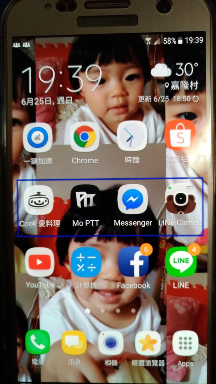 請問照片內的藍色框框怎麼消除,藍色框框會一直跳動,點螢幕完全沒反應,在發生這個狀況以前好像有去設定到一個什麼互動輕觸之類的