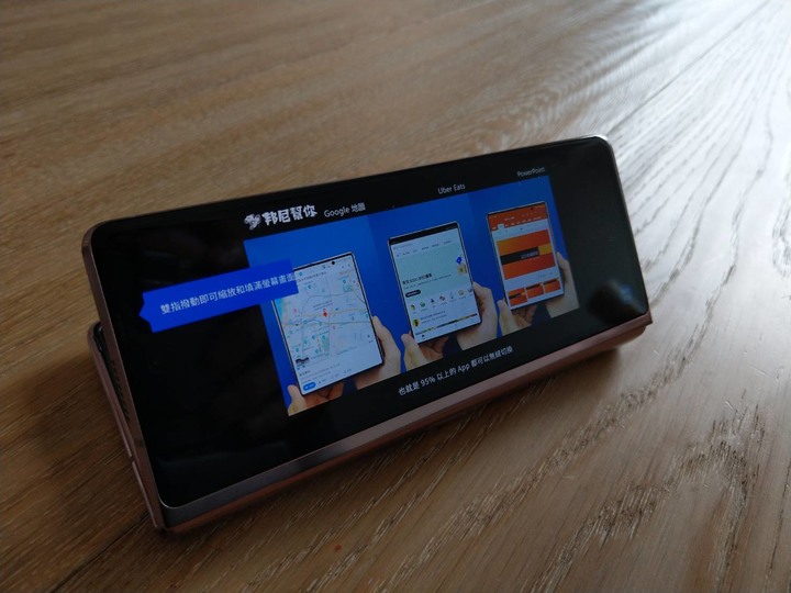 主螢幕全開的時候,最多可以進行三種app的同框操作,可以一邊看影片,一邊查資料,一邊寫稿子,根本就是一台小筆電(那不會去買筆電就好了喔!?)