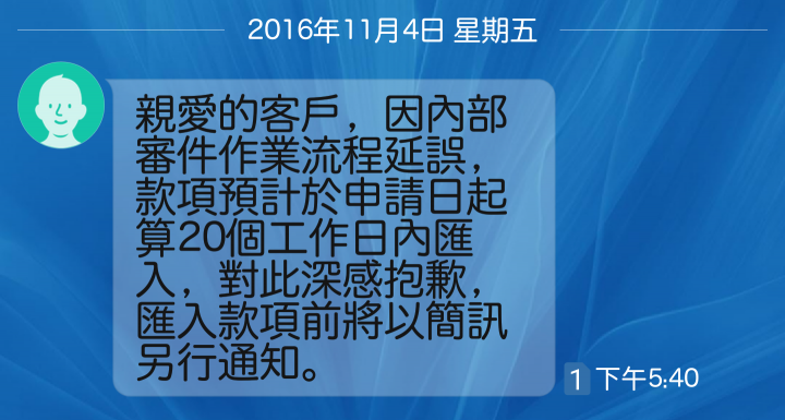 小弟是10/15三創退的,剛剛收到一樣的簡訊後,查看網銀的款項已匯進來囉!