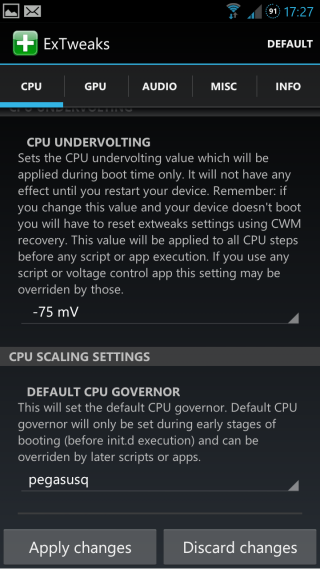 DEFAULT CPU GOVERNOR => 選 Pegasusq