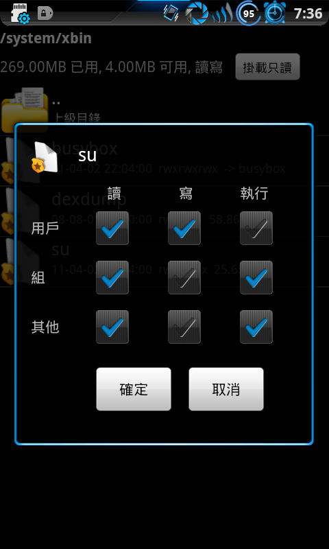 然後我有裝上 在system/xbin資料夾中都有busybox檔案