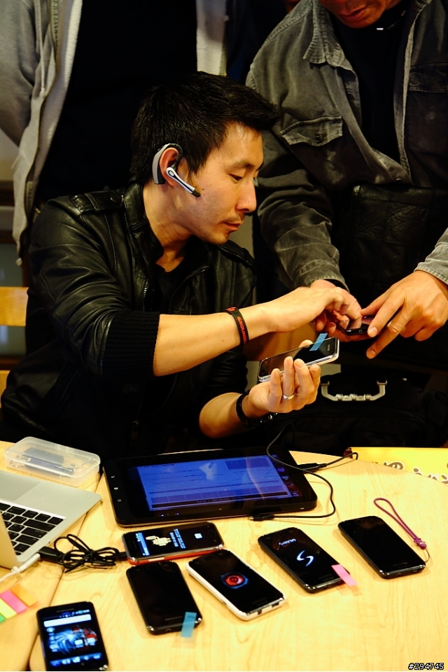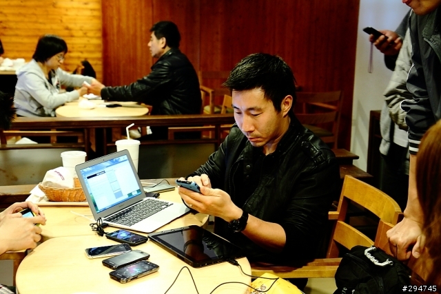 想當然第一張一定是型男J大。由於我晚到,J大早就開始刷機了。陸陸續續網友將自己心愛的i9000排排站,好讓J大好好整頓一番。在場圍觀的眾i9000網友們@@"細心、耐心、貼心的J大開始講解一些刷機以及注意事項。刷機之前還會再次提醒網友有沒有先備份,之後才會將手機還原。仔細監控每支手機的狀態。認真的男人最帥XDDDDD。J大早就應該要看個鏡頭擺Pose啦。當天大概有30支i9000吧,有些人有事提早走,所以沒辦法拍到。感覺很像是Fans請J大簽名XD。網友紛紛向J大提出疑問,J大也用心解答。看到J大耳上的藍芽吧,當天有接不完的電話,都是募名而來的i9000網友們。嗯,J大用Air來幫大家刷機...。還有一台三隻鳥的平板電腦。這時候大約四點多,也超過J大預計離開的時間,所以多半網友先離開了。所以,只能抓這幾位網友來跟帥氣的J大來拍照啦@@"J大,期待你在4/2號高雄第二波的刷機聚會阿@"@。