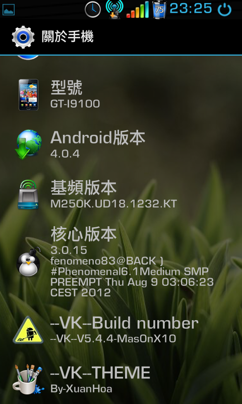 回報一下~~~我刷了VK製訂版 5.4.4 真的還蠻順的!!也很美觀不過我發現一個問題...我沒辦法在 設定→ 顯示→ 螢幕逾時 更改它的時間,就算改了再進去看設定,還是15秒...不知道有沒有朋友有遇到這個問題??難道是要再重刷一次了嘛.......上搬回家還要刷機很累人阿...