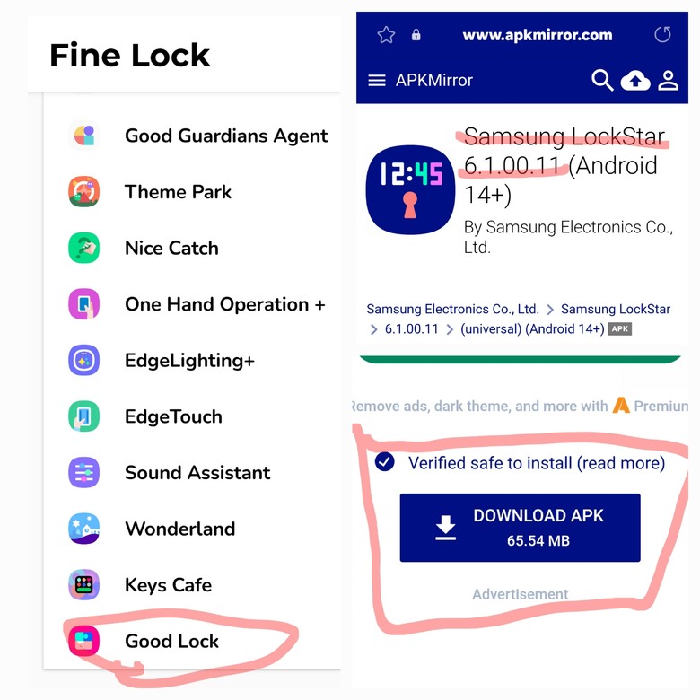 我自己是使用 Fine Lock ,所以要先在列表中找到 Good Lock,再進行以上動作