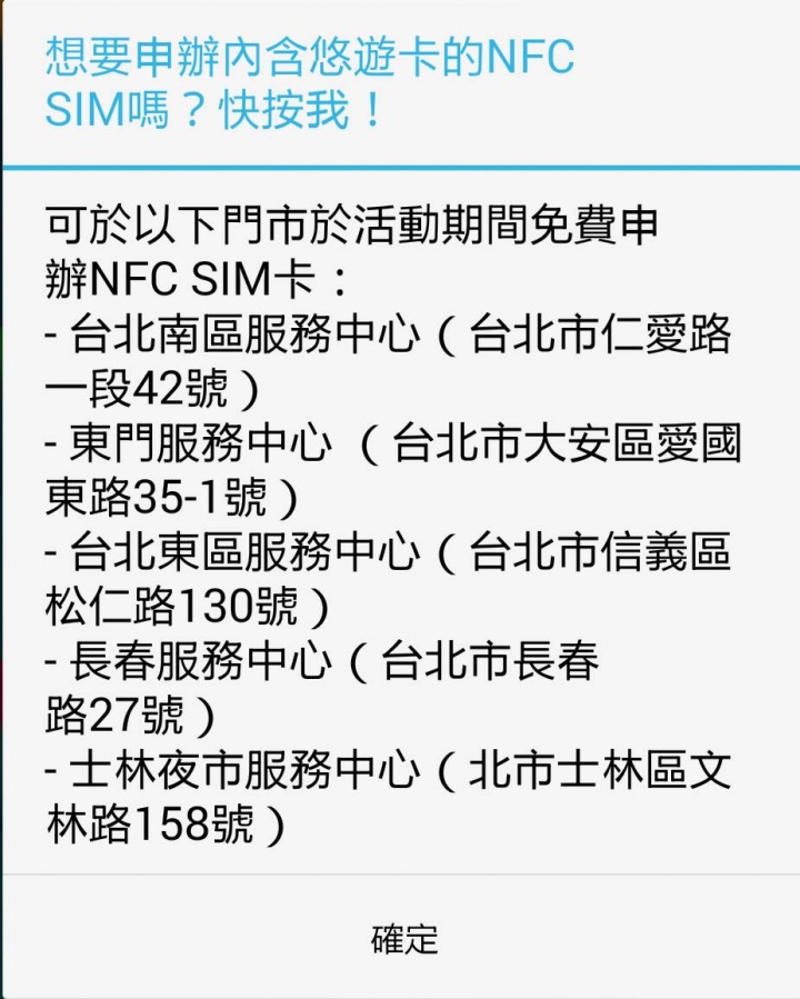 粿仔 wrote:今早去辦了,直到剛剛...(恕刪) 今天特地北上,跑了二家中華電信都撲了個空:跑到台北東區服務中心,遇到那裡在整修門面,星期六不營業,跑到台北南區服務中心,說缺卡片要等到下星期一下午才會再進貨。另外請教了櫃檯小姐,回答說:1.只有4G的門號才能換NFC SIM卡。2.NFC SIM卡只有Nano的規格。以上二點,不知道資訊正確否?