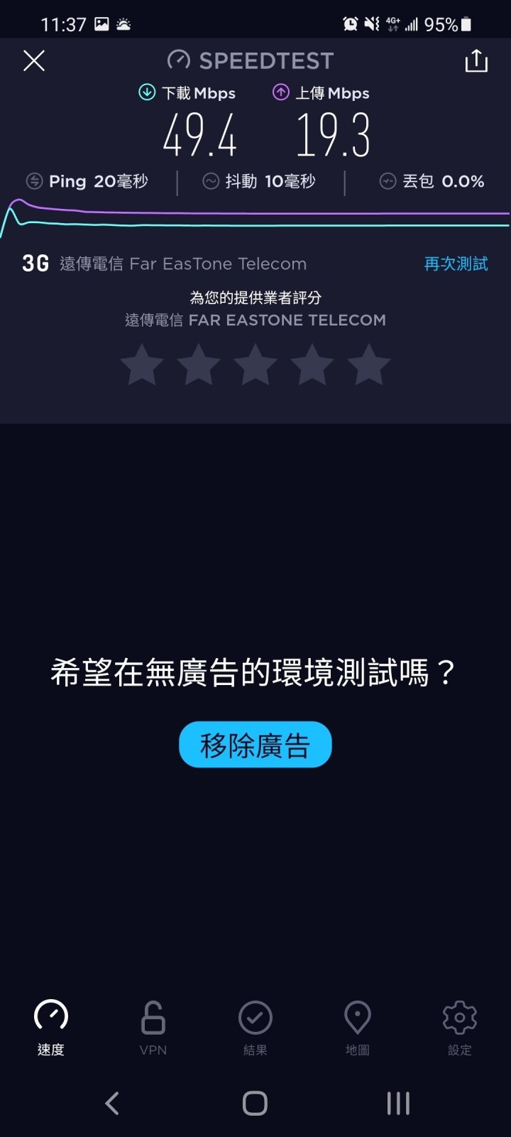 救救我....我的手機是s21最小的這支使用中華電信4G吃到飽,沒想到我的測試出來是這樣...連接家中的wifi是這樣我居然在這樣的狀況下使用了兩個多月,還以為在家連wifi才是正常的手機網路使用體驗,我在外面使用4G網路時都覺得卡卡的