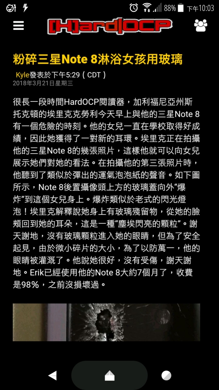 吳建鴻 wrote:機殼都裂了你沒看到嗎...(恕刪) 可能三星的看法跟你一樣,所以不出保固,但那些 NOTE 8 破相機玻璃的機主不這麼認為看看這個,說是正在拍照時破的:https://m.hardocp.com/news/2018/03/21/shattering_samsung_note_8_showers_girl_glass截圖:google翻譯截圖:你覺得破個相機玻璃沒什麼,那些參與集體訴訟的可不這麼想!