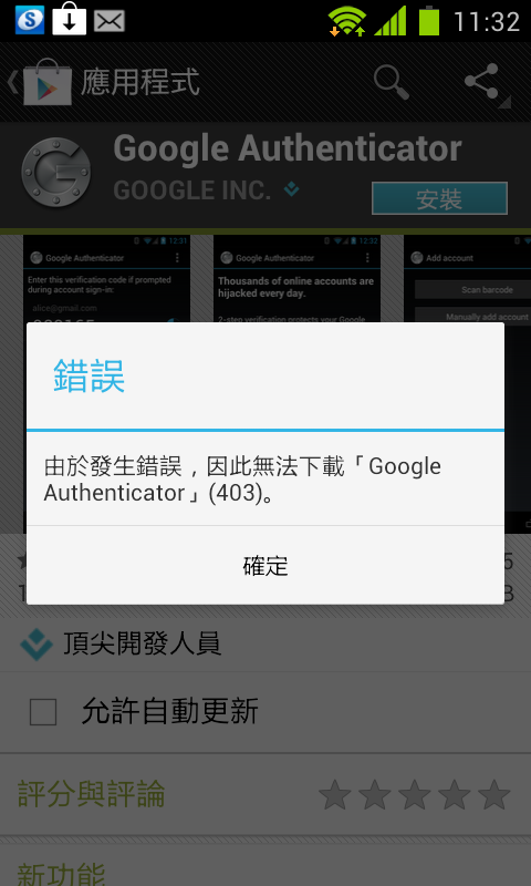 nbvcxsw wrote:我也遇到相同問題提供...(恕刪) 我按照您的方法(海卓上網大師)試了,依然沒用耶~這也不知道是甚麼問題,我的Google帳號有設定兩階段認證,不知道這是否有關。但現在移除兩階段認證,依然沒有效果。