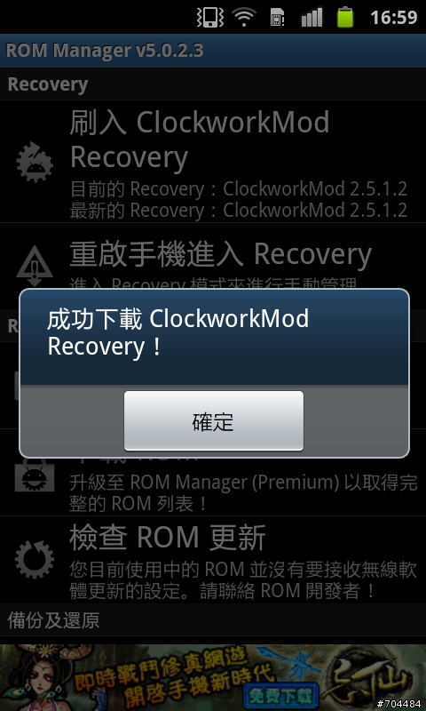 小弟目前遇到一個問題…(從來沒刷過CWM,這是第一次….)目前i9000的2.3.6韌體版本是刷 liuwh 大大提供的(刷好即ROOT)http://www.mobile01.com/topicdetail.php?f=568&t=2828670&p=1下載ROM Manager後安裝CWM Recovery,都很順利但手動進入recovery模式,就發生問題...(永遠都是recovery 3e)即便重新刷2.3.6韌體在下載ROM Manager安裝CWM Recovery也是一樣爬過文後,好像是要將Recovery 3e 改成 免驗證版 Recovery 3e,才能順利刷入CWMhttp://www.mobile01.com/topicdetail.php?f=568&t=2040525但我依照方法下載了『免驗證版 Recovery 3e』,也放到/system/bin目錄下,但還是無法順利刷入CWM請問有處理過這問題的大大,小弟是那個環節搞錯了…(搞了一個下午了,導致後面無法刷入4.1.2 CM10)