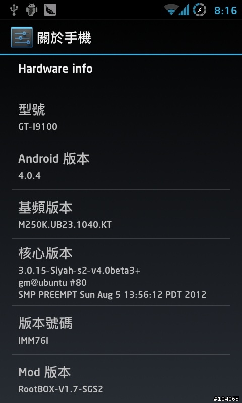 一刷完基頻就是M250K.UB23.1040.KT,核心他原廠可以搭配Fluxi ICS Kernel, Siyah ICS Kernel, CM ICS Kernel, Dorimanx ICS Kernel & Dark Knight ICS Kernel,我是刷最新的Siyah 4.0B3核心