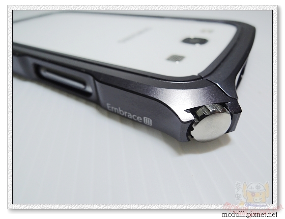 Embrace III Samsung GALAXY SIII 可以從照片上看到內緣的部分。有不少個橡膠,防止S3直接和金屬框接觸,而產生刮傷,小米有用過那種金屬框,不但沒有保護到,還讓機子受了傷!心痛呀~~