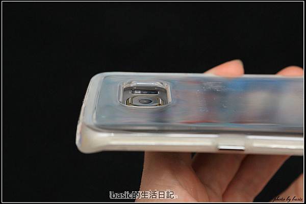 S6 edge背面的鏡頭在裝了殼之後高度已經比殼還低了 , 不用擔心讓桌上會被磨損的問題..