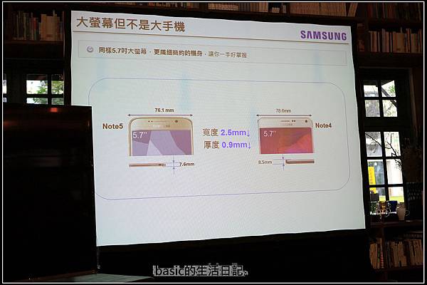 一樣是保持5.7"的螢幕 , 但是機身更薄 , 更窄..