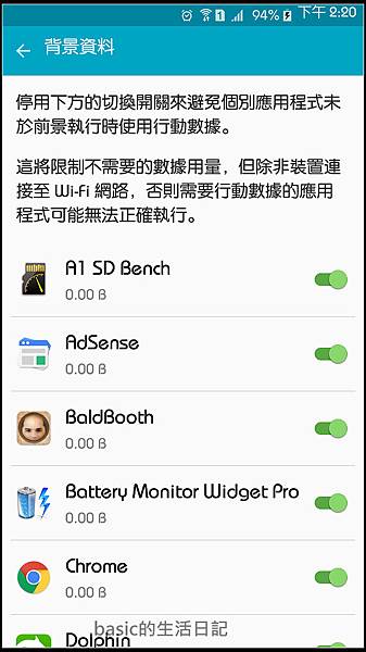 接下來把一些你不需要它在背景運作的程式限制背景資料...