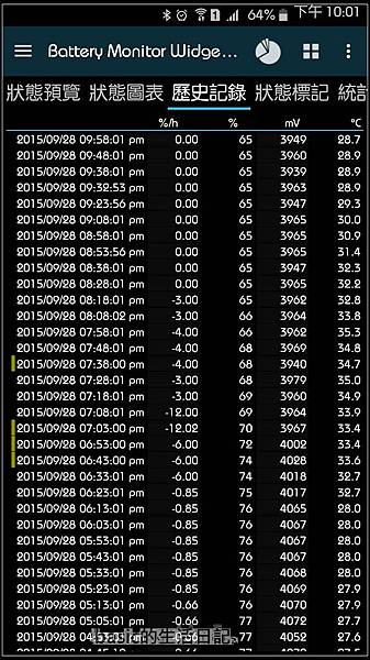 附上我今天一天的監測圖(有比較耗電的時候就是我在上網或滑fb , 其它都待機 , 4g , wifi , gps全開)