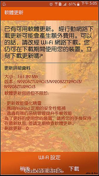 這個更新有161.89MB , 上面是寫著更新效能優化精靈 , 安全性修補跟更有效的系統管理提升手機效能..