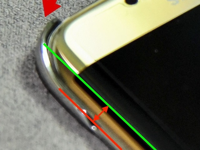 shiang99441 wrote:恭喜你 不過這種背...(恕刪) 問題是曲面螢幕物理性不可避的 曲面部位會高出邊框與保護殼偏偏曲面最易碎又是最長邊 這種殼保護力有限一般平面螢幕保護殼是到綠色線為了能觸控曲面螢幕只能降低到紅線位置 導致曲面部位高出邊框與保護殼