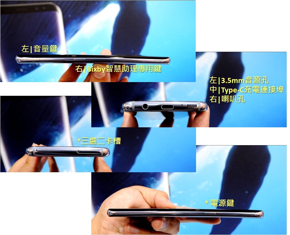 特別的是SAMSUNG這次為了Bixby便於使用,因此規劃有一專用鍵在機身左側(電源鍵則在右側)