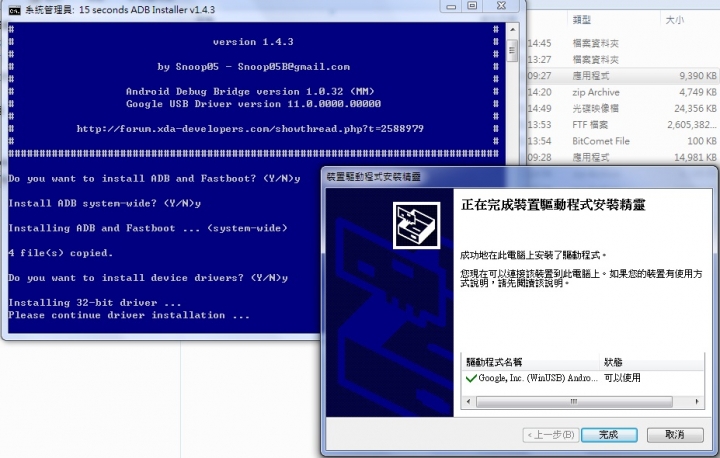 shinetsai wrote:板大我重新解除安裝...(恕刪) 你確定手機是亮藍燈?你接上去的時候手機沒有進入開機畫面?他一直判斷你是 adb狀態,不是能用Fastboot的bootloader狀態。還有你驅動簽章記得去關(方法請google),再來裝驅動(雖然看起來你是ok的)