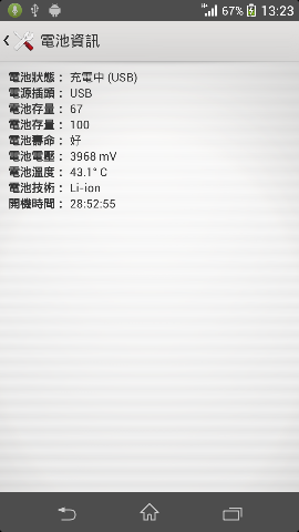 剛看完極樂世界原本有用MHL接到電視上看不過畫質似乎只有DVD品質,頂多到720P吧最後還是用手機看完整部了.不過這個播放程式有點瞎海苔條不會自動隱藏下面是耗電程度版本257亮度一半,自動亮度關閉接耳機音量調到最大聲.一部電影下來(未接充電)電力大約扣掉20%溫度控制也不錯~第一次用手機看完整部電影...眼睛真酸dahaha1221 wrote:你不能給我什麼,我不...(恕刪) 別理他了~可能生活壓力大上網酸酸解憂愁