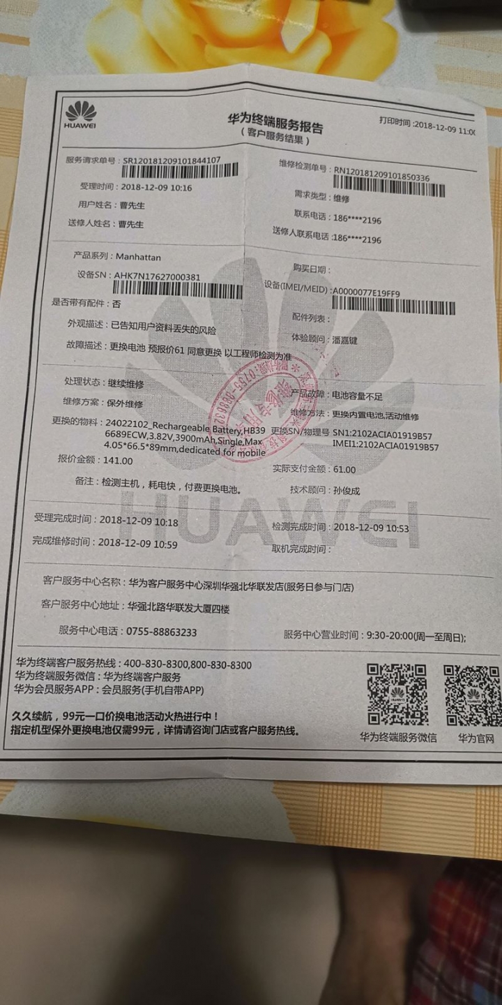 先说售后,我看到华为的 99元续航优惠,以 99元人民币(台币450)在官方服务中心更换新电池,价格已包含人工费令我羡慕,连在香港买的华为/荣耀手机也可以拿去深圳的服务中心享受这优惠。
