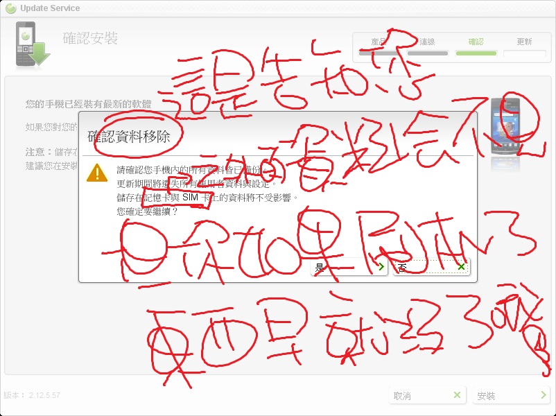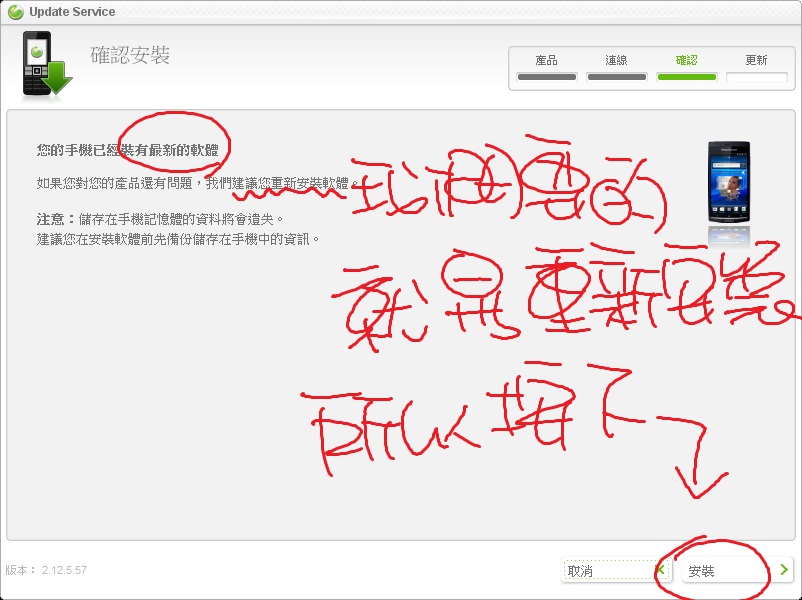 等他下載玩最新軟體並安裝前,不要拔除你的ARC S 。等到跑完後,重新開機,你的手機就復活了!